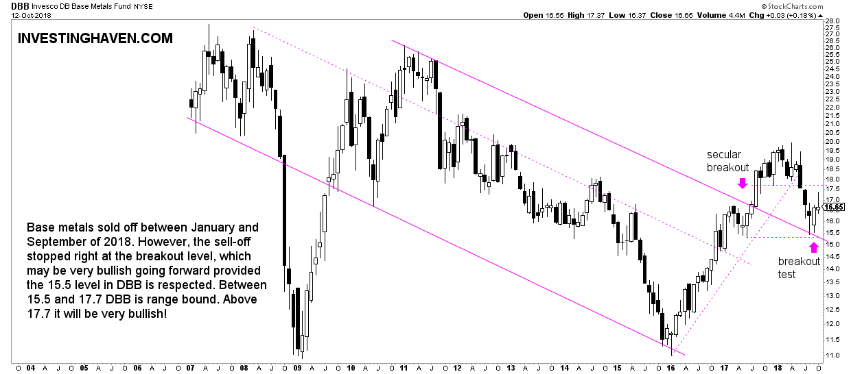 From a chart perspective the DBB fund did exactly what it had to do. After its secular breakout of September last year it topped in January of 2018 only to come down sharply.
