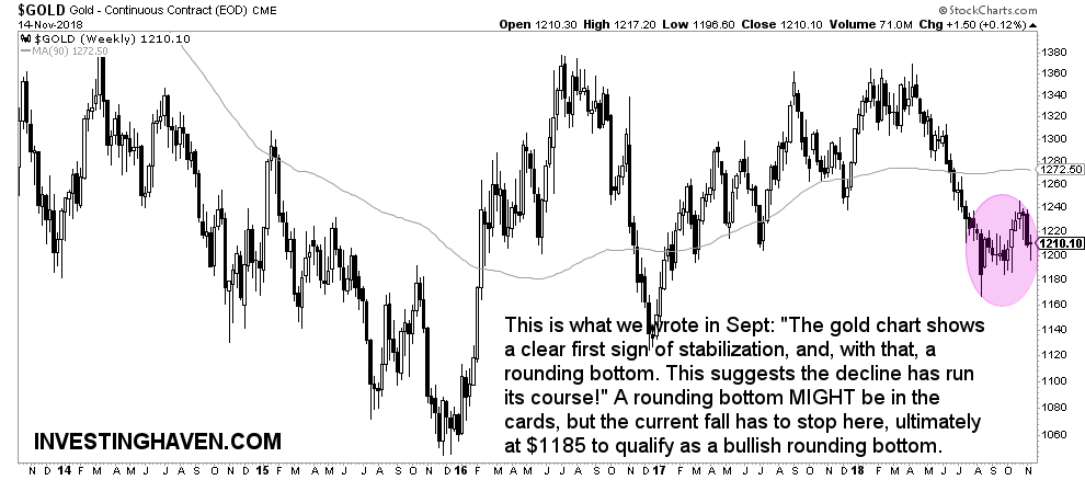 As said in our gold price forecast 2019 and as per our 3 long term gold price charts we expect gold to become mildly bullish, best case wildly bullish, going into 2019. Although the price of gold saw a vicious sell-off last week it might be flashing a bullish sign now, this is why.