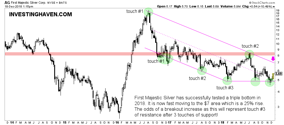 Last month we said that silver stocks are a screaming buy. This came after we indicated that First Majestic Silver in particular would provide leverage in the silver market based on our bullish silver stocks forecast 2019. All this assumes that our silver price forecast 2019 comes true. Today, we get a confirmation from the silver market that our predictions are underway, with a first easy target of 7 USD which represents a rally of 20 pct.