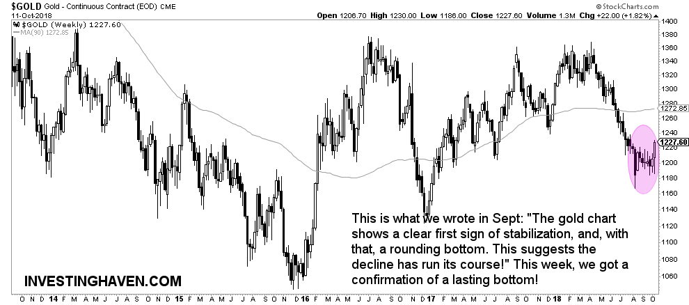 October is an important month for the gold and silver market. Most often seasonal strength starts in October, and lasts until April. This year as well we see the first signs of strength returning the gold and silver market as October 2018 kicks off. This really is an early confirmation of our gold price forecast 2019, as well as silver price forecast 2019 and bullish setup from our long term gold charts. Consequently our silver miners forecast 2019 should be taken very seriously, as well as our top gold stocks 2019 insights.