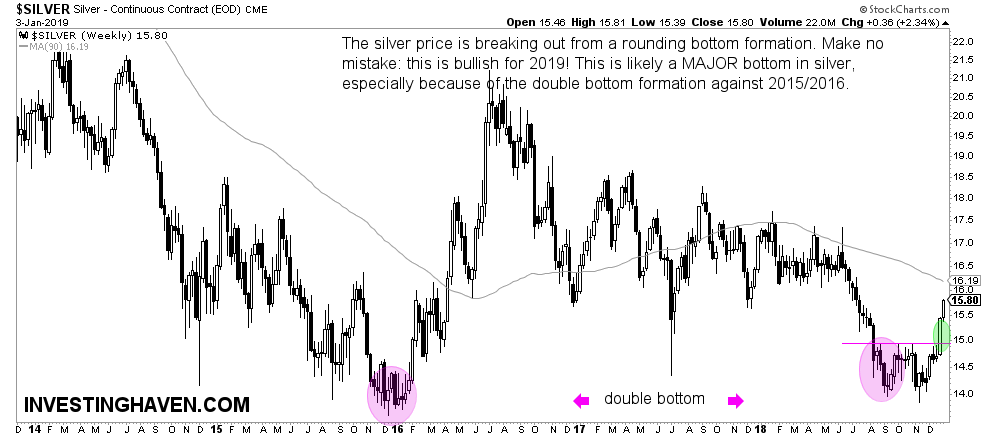 Silver price weekly chart looks bullish for 2019 after a breakout