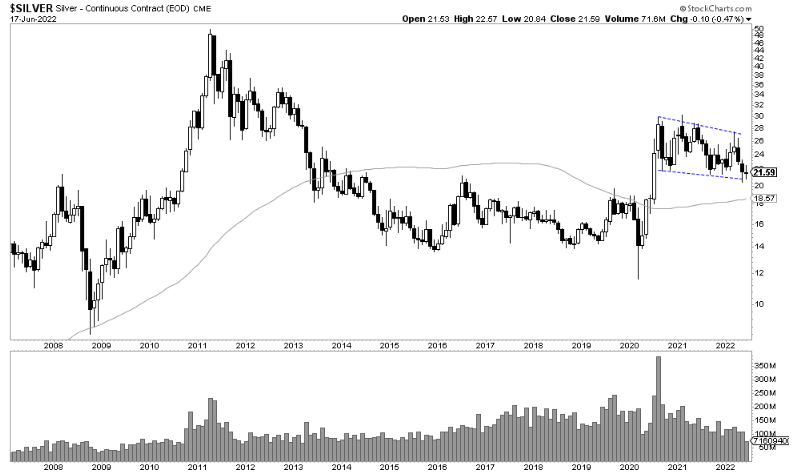 The major set up we continue to watch is the multi month bull flag on the monthly. This is a major setup in our bullish thesis on Silver. A breakout to the upside will catapult silver price to $40 pretty fast.
