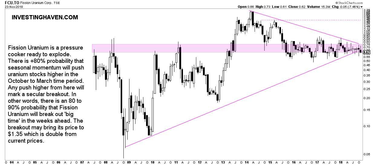 “If this breakout takes place still this year there is plenty of time to move higher in this November-February timeframe. This will likely bring Fission Uranium to the $1.35 area in the first month(s) of 2019.”