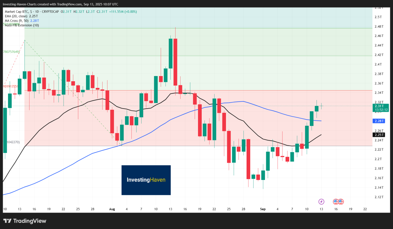 Bitcoin functions as a digital store of value and a permissionless settlement layer. It leads the market in liquidity and exchange coverage. As of September 13, 2025, Bitcoin’s market capitalization was about $2.31 trillion, making it the #1 crypto asset by market cap and of the best performing cryptocurrencies.