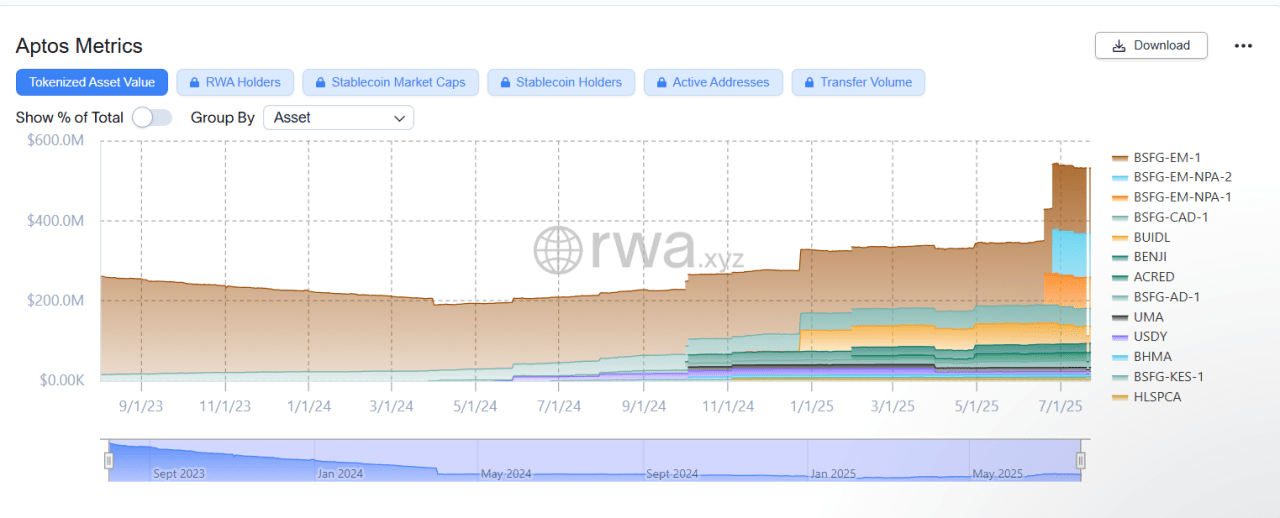 Aptos ecosystem is expanding rapidly; by early 2025 it hosted over 170 projects with more than $1 billion in total value locked (TVL), and exposure to real‑world assets pushing $540 million.