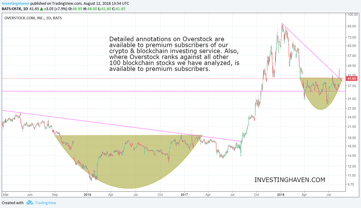 InvestingHaven’s blockchain & crypto investing service has analyzed Overstock in detail. Want to find out how it ranks against all other blockchain stocks? The answer is only available to premium subscribers, become a member now >>