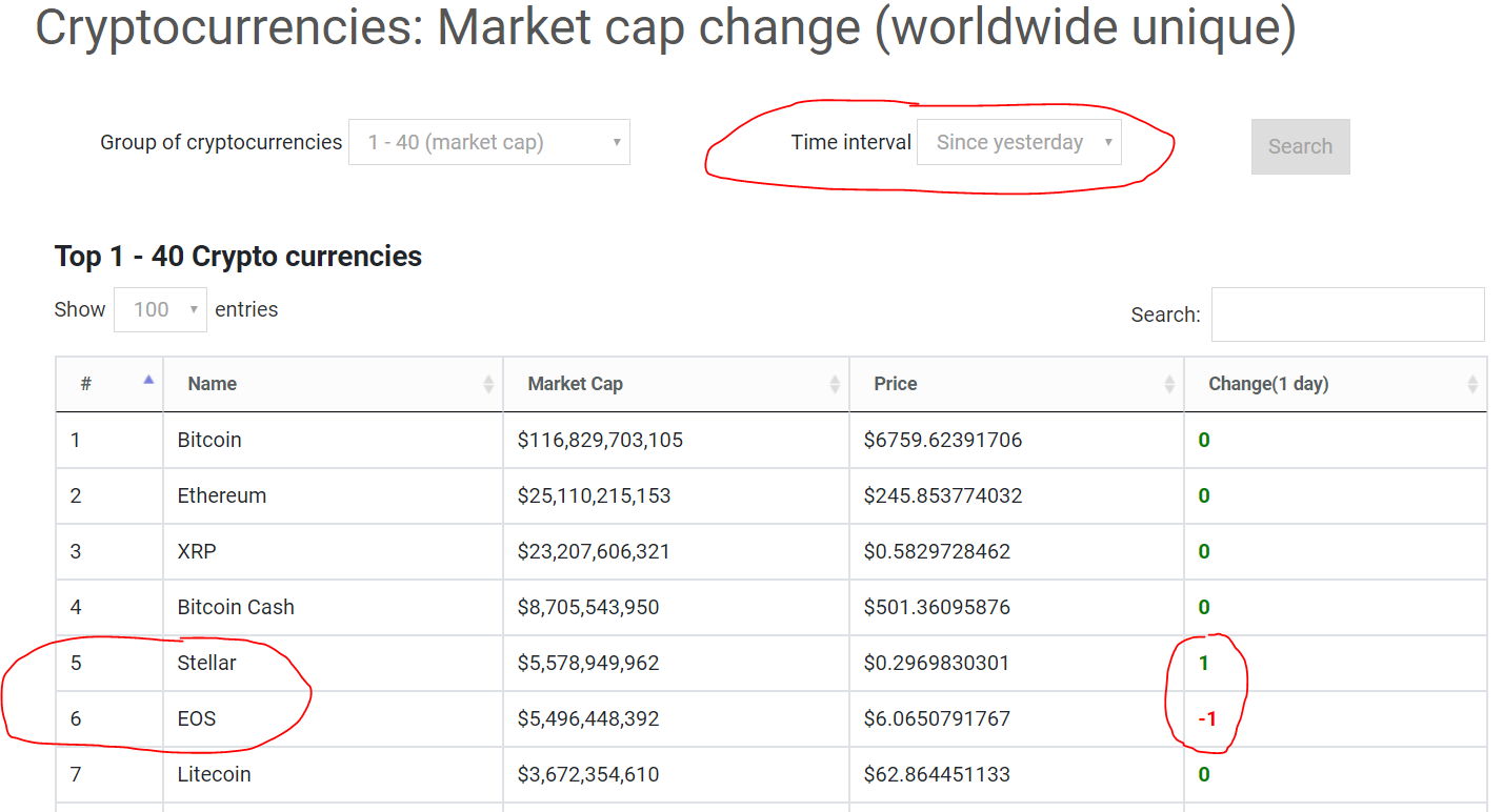 Below is the proof of Stellar Lumens being the 5th largest cryptocurrency. Note, however, it did not stay there for a very long time. The source of this screenshot: a unique indicator which measures market cap changes, and it is exclusive to our premium crypto subscribers (become a member here and get access to a wealth of crypto and blockchain investing insights).