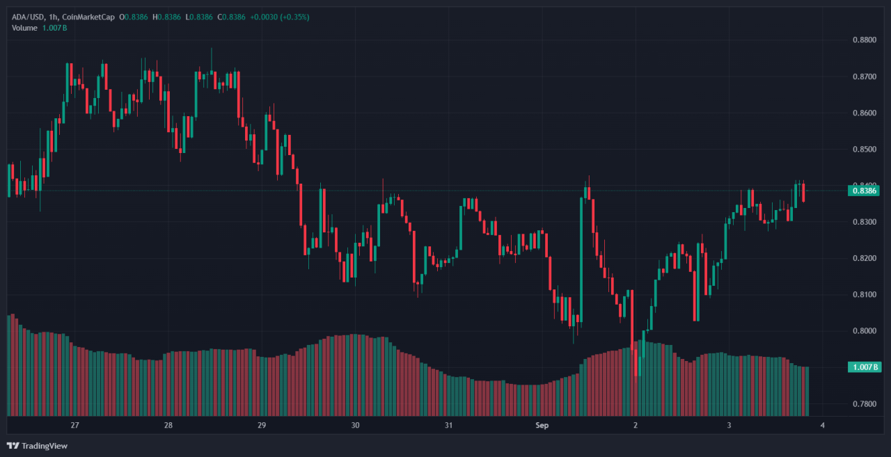 Cardano DEX volume runs at roughly $2.8M over 24h, modest compared with larger L1s, so any sustainable rally needs higher trading throughput.