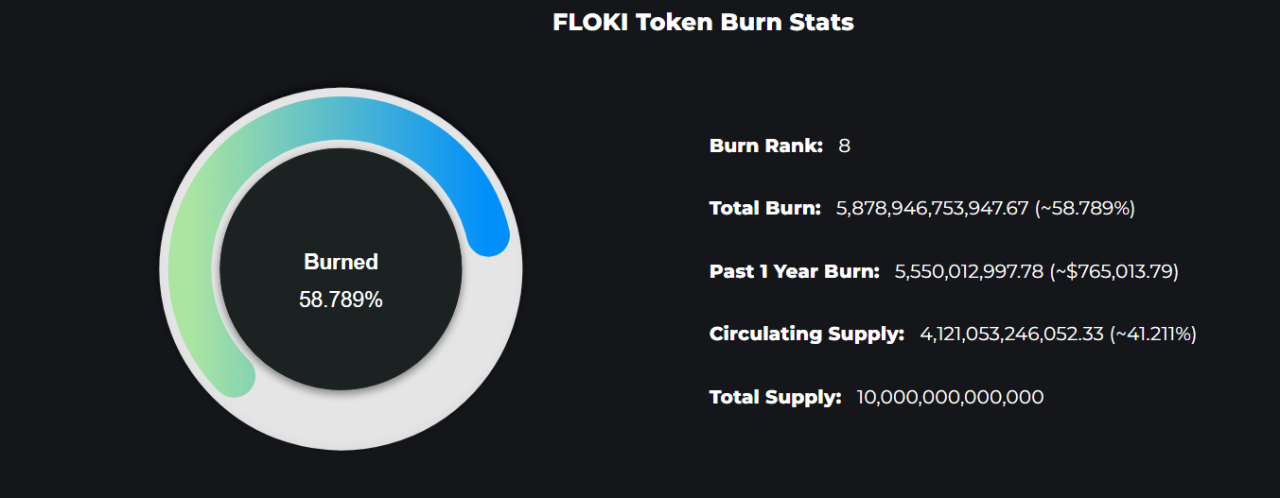 FLOKI follows a deflationary model designed to make the token scarcer over time. Its total supply is about 10 trillion, but roughly 9.54 trillion tokens are in circulation, according to major crypto trackers.