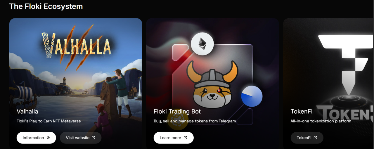 FLOKI’s most ambitious project is Valhalla, a play-to-earn MMORPG that went live on mainnet in June 2025. It is a browser-based game where players complete quests, collect NFT items, and engage in battles that reward them in FLOKI tokens.