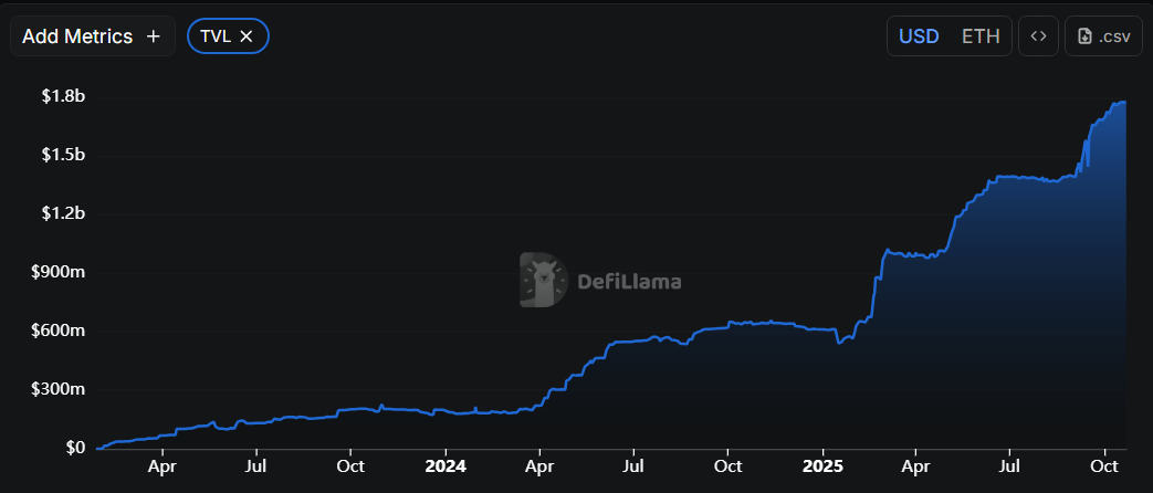 Ondo’s platform has grown rapidly in assets under management, with tokenized fund value climbing into the hundreds of millions of dollars and total TVL passing the billion-dollar mark.