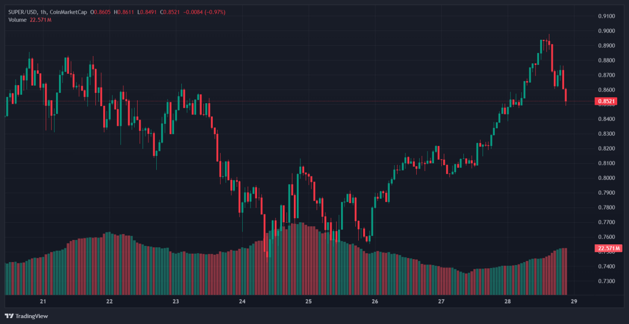 SuperVerse is trading near key technical support, roughly between $0.64 and $0.75, as momentum indicators show oversold conditions. In early March 2025, RSI readings were as low as 41, and SUPER’s dip from about $2.20 in December down into the mid‑$0.60s has triggered rebound potential.