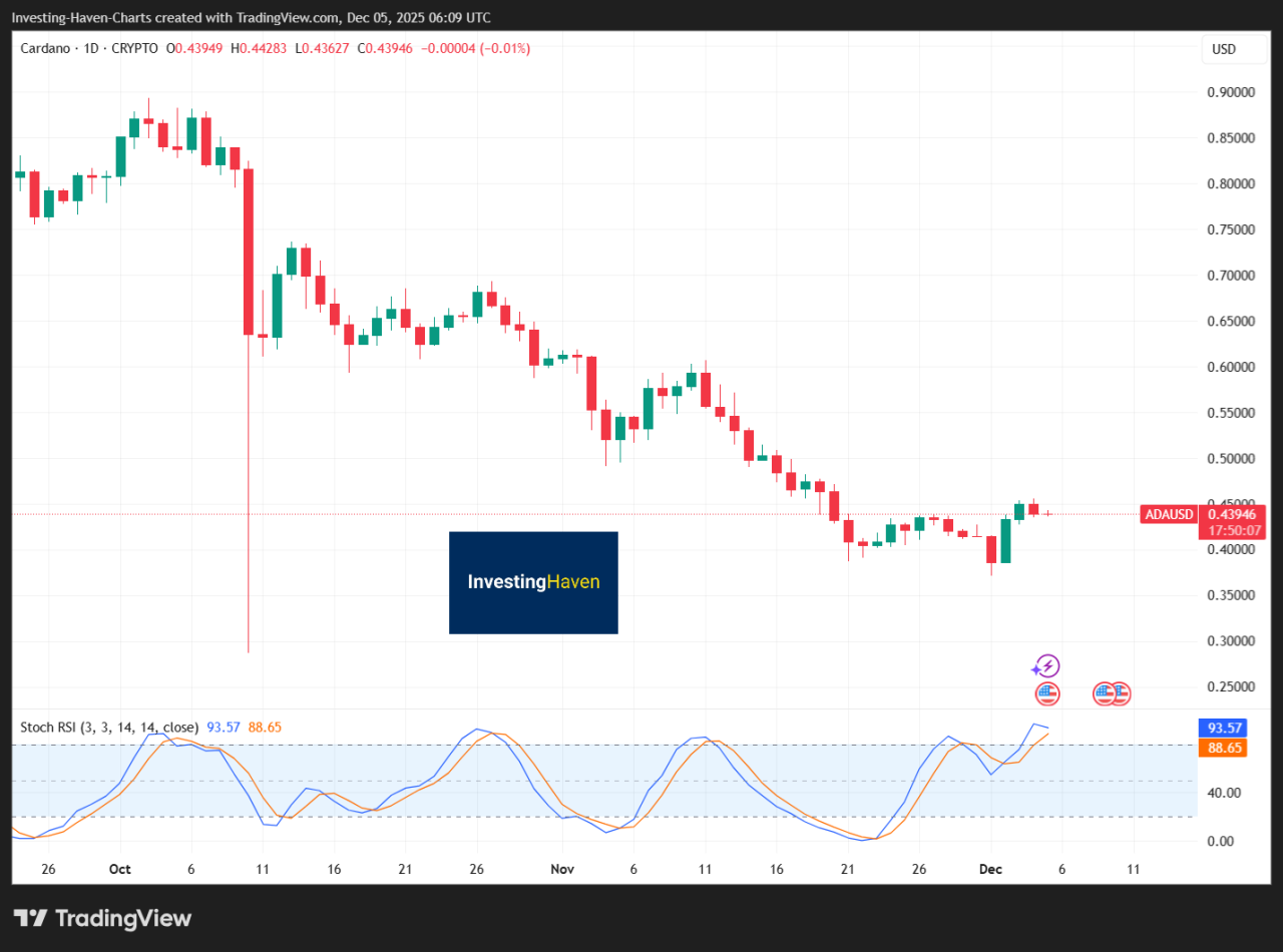 - ADA trades around $0.44, and December’s catalysts may increase volatility as traders react to real events and funding updates.