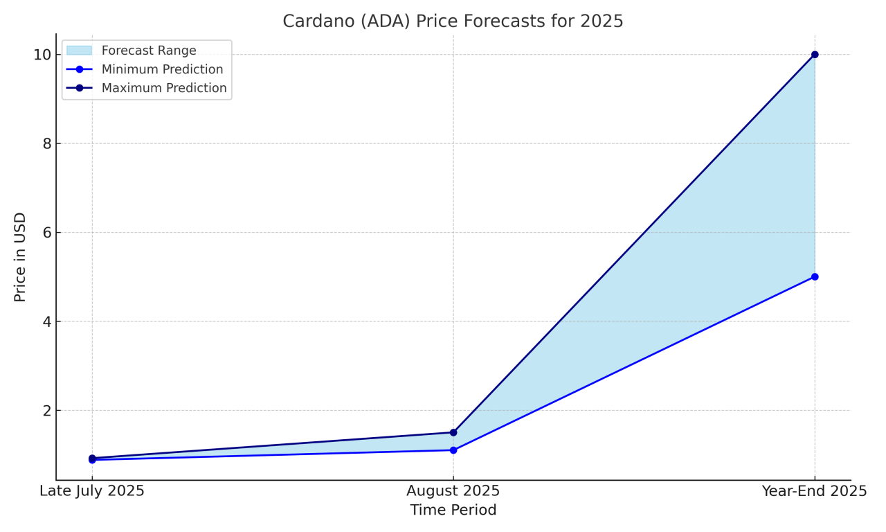 With upgrades like Chang and Hydra nearing deployment, rising TVL, and institutional interest, Cardano price forecasts for 2025 are mostly bullish and we could see it easily surpass $1 and begin an explosive phase beyond.