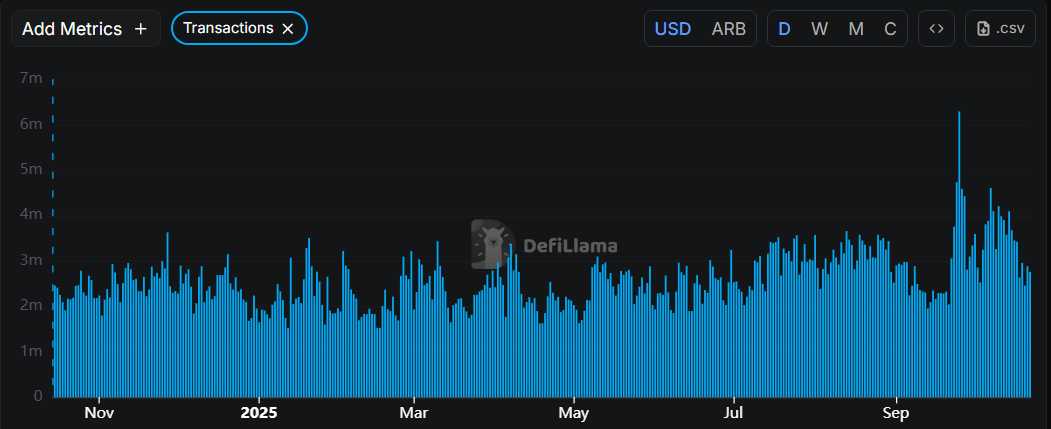 Arbitrum continues to lead in user engagement. It records hundreds of thousands of daily active wallets and over 2.6 million transactions in recent 24-hour periods. This suggests more trading, lending, and DeFi activity on its network.