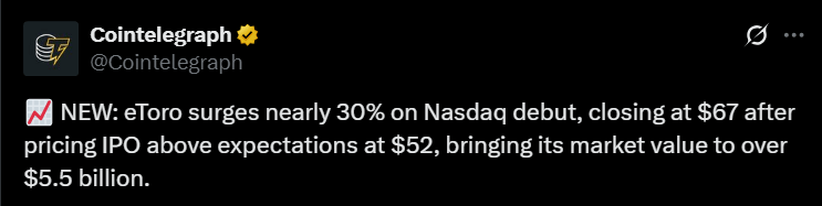 The platform combines stocks, ETFs, forex, and cryptocurrency—now offering 130+ crypto tokens globally, with futures in Europe and options in the UK added in Q1 2025. In May 2025, eToro went public on Nasdaq with a valuation around $5.6 billion.
