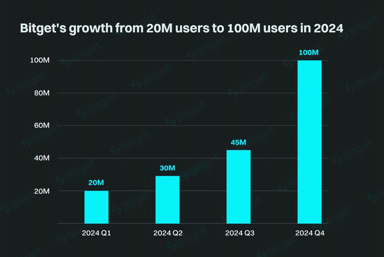 Q4 2024 saw dramatic expansion: 400% user growth, spot volume tripling to $600 billion, daily trading hitting $20 billion, and Bitget achieving the 4th-largest global volume (~4% market share).