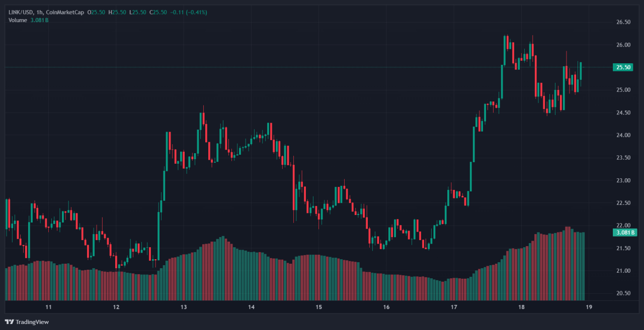 LINK broke past the $24.50 resistance level with a 66% surge in trading volume, a sign of strong buyer interest.