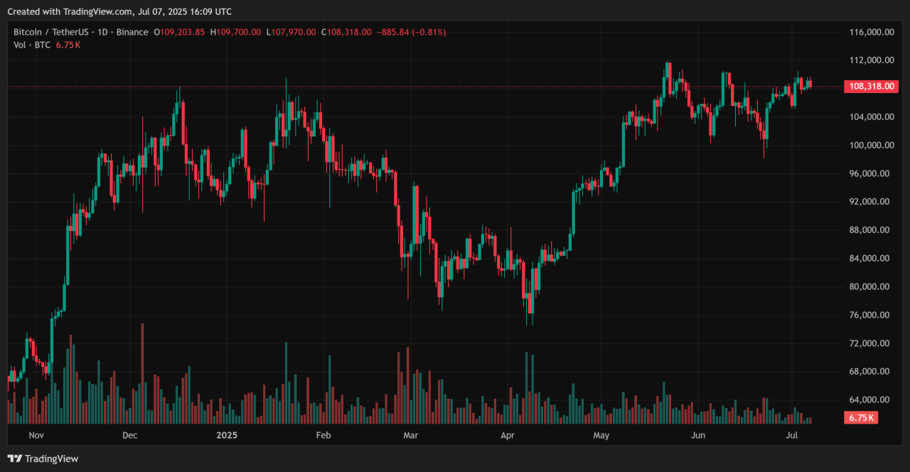 Bitcoin is currently trading around $108K, just below its all-time high near $111K, and still pacing toward a record monthly close in June (~$107K). A move above the critical $114K resistance would set the stage for a potential rally into the $136K–$143K zone, depending on the analyst or model cited.