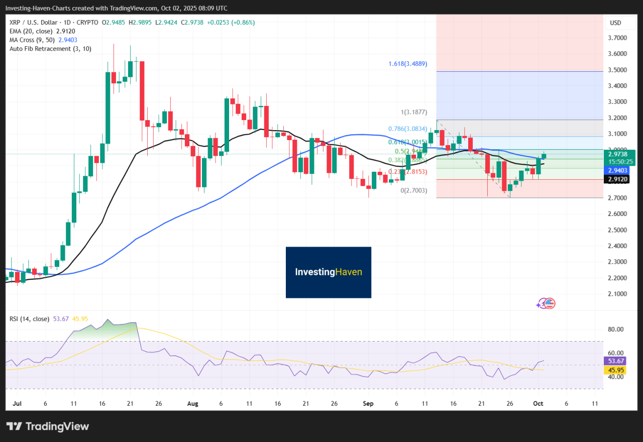 XRP moved 3% and traded around $2.97.
