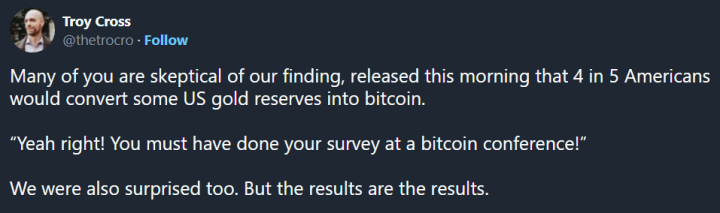 Despite initial skepticism from some social media critics who questioned if only crypto-enthusiasts were polled, Nakamoto Project co-founder Troy Cross affirmed the survey’s validity.
