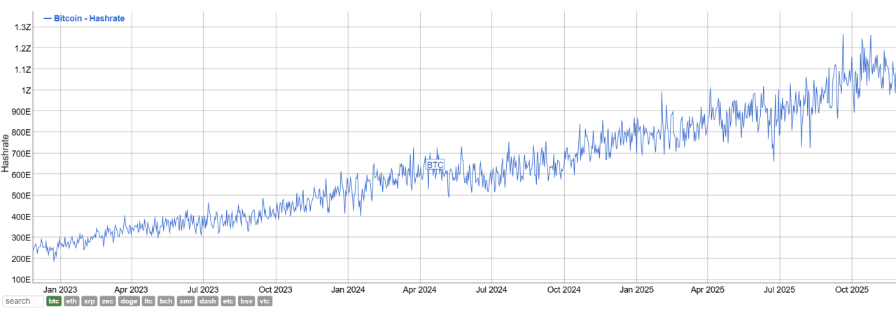When hashprice falls this low, miners bring in less money even though their energy use stays the same. Hashrate also grew about 5% in a single month, which tightened margins further and pushed weaker operators to consider selling part of their bitcoin holdings.