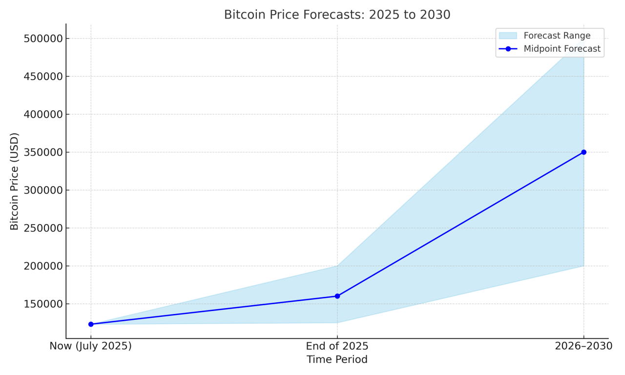 Top analysts see room to run. Near‑term forecasts place Bitcoin between $125K–$160K, with some models aiming $200K by year‑end.