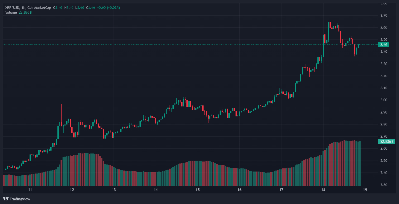 XRP recently broke $3.40, following a renewed U.S. crypto-legal framework, and is now trading around $3.40 – 3.60.