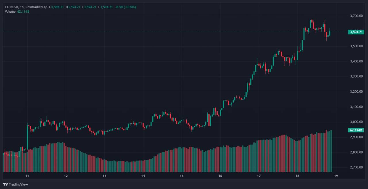 Ethereum is trading near $3,594 – 3,675, reaching a six-month high. U.S. spot ETH ETFs have seen over $2 billion inflows since July 4, including a single‐day record of $727 million.