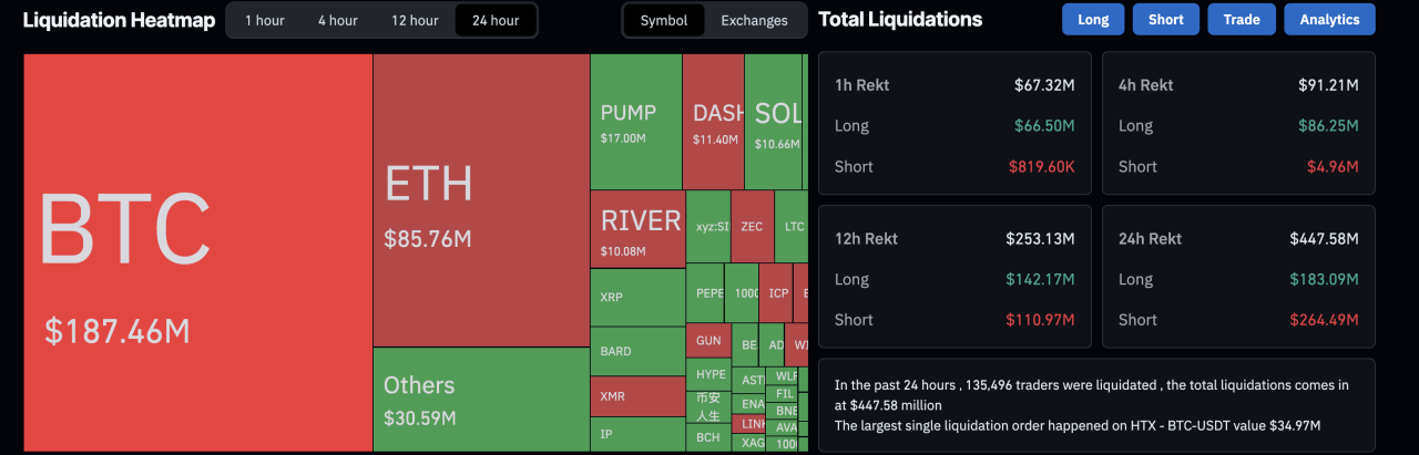 Prices dipped across the crypto market reflected rising uncertainty: BTC fell about 1%, top altcoins dropped roughly 2%, and about $66M in leveraged trades were wiped out.