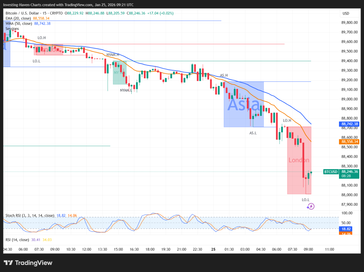 Bitcoin holds support in the $85,000–$88,000 range, with resistance around $95,000.