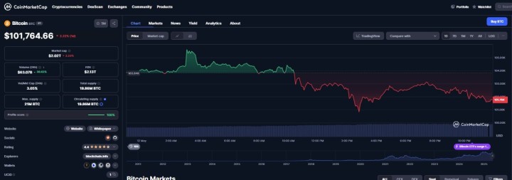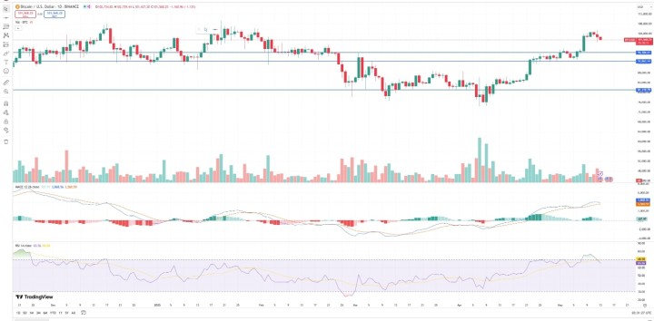 The legacy coin hit a 4-month high of $105,700, though it has since retreated and currently trades around $102,000, according to data from CoinMarketCap. The daily trading volume is currently up 14% at about $59 Billion.