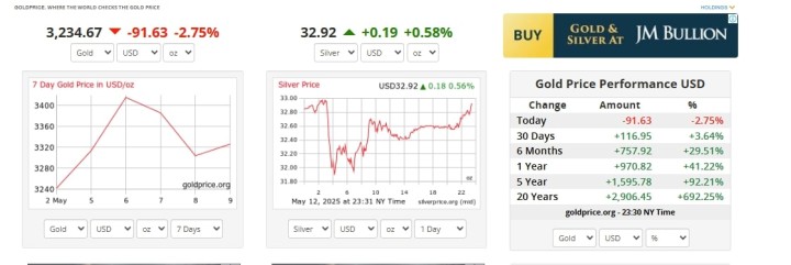On this first day of the second week of May, Gold prices stumbled and shed $91.6 from last Friday’s market close prices to settle around $3,232. This places it 8% below the all-time high of $3,500 set less than three weeks ago.