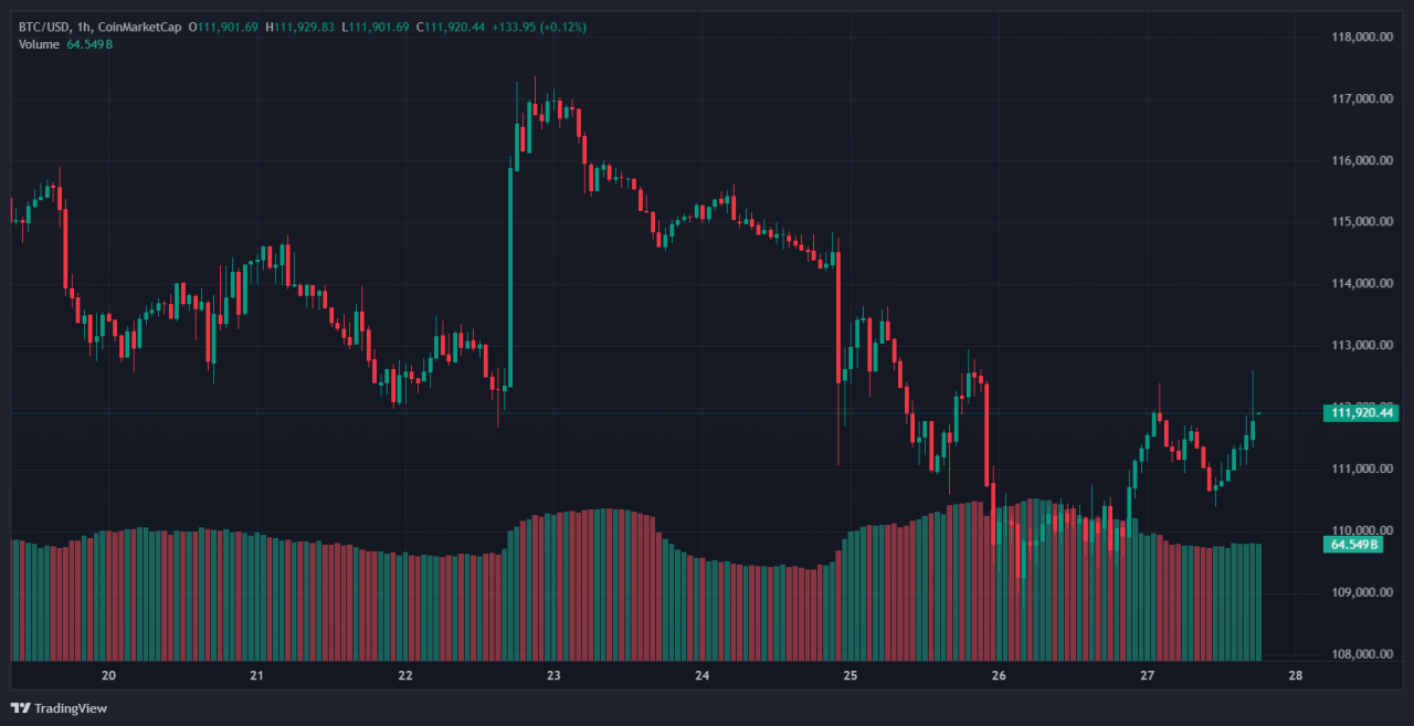 Spot activity today has stayed roughly between $109k and $112k, with intraday touches under $110k recorded on major venues.