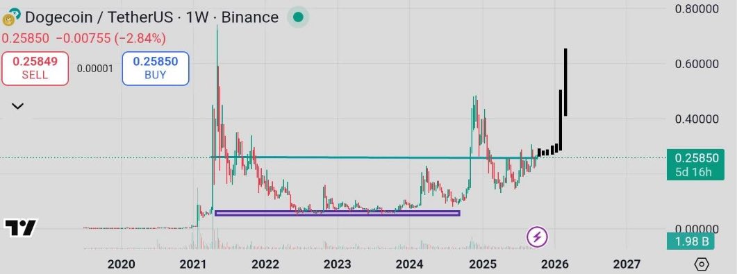 (Dogecoin Binance weekly chart. Image credit: X.com)