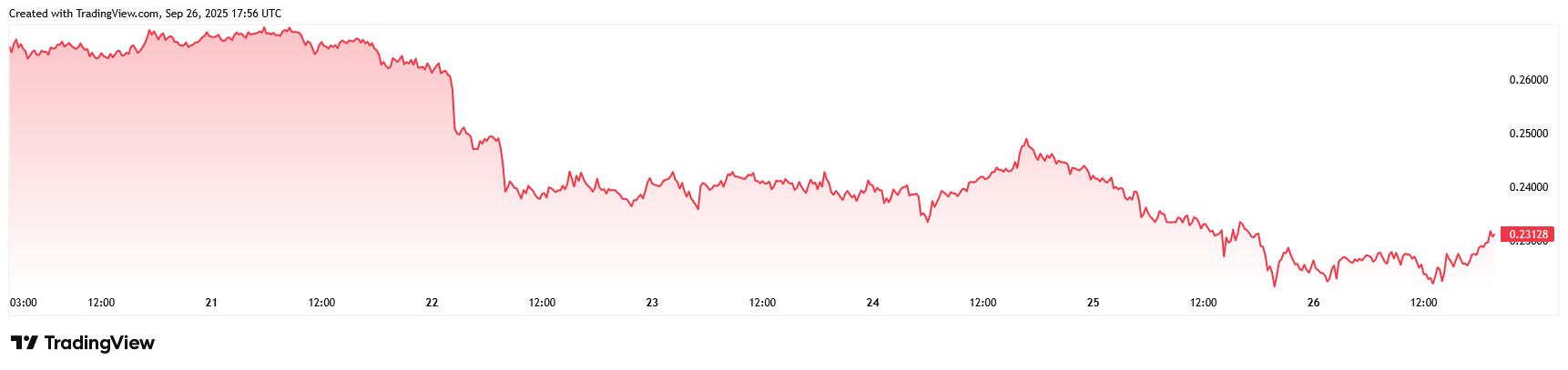 However, the main risk is if it falls below the $0.22 – $0.23 support, which could lead to a drop toward $0.20 – $0.21.