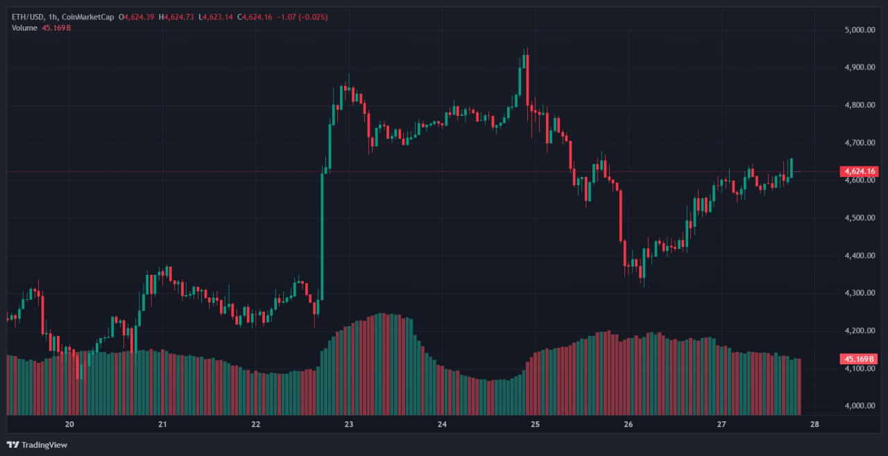 Ethereum, on the other hand, is down 1.9% in 24 hours and now hovers around 2294.94, ETH is up over 6% in the last 7 dayswith a market cap above $555B.
