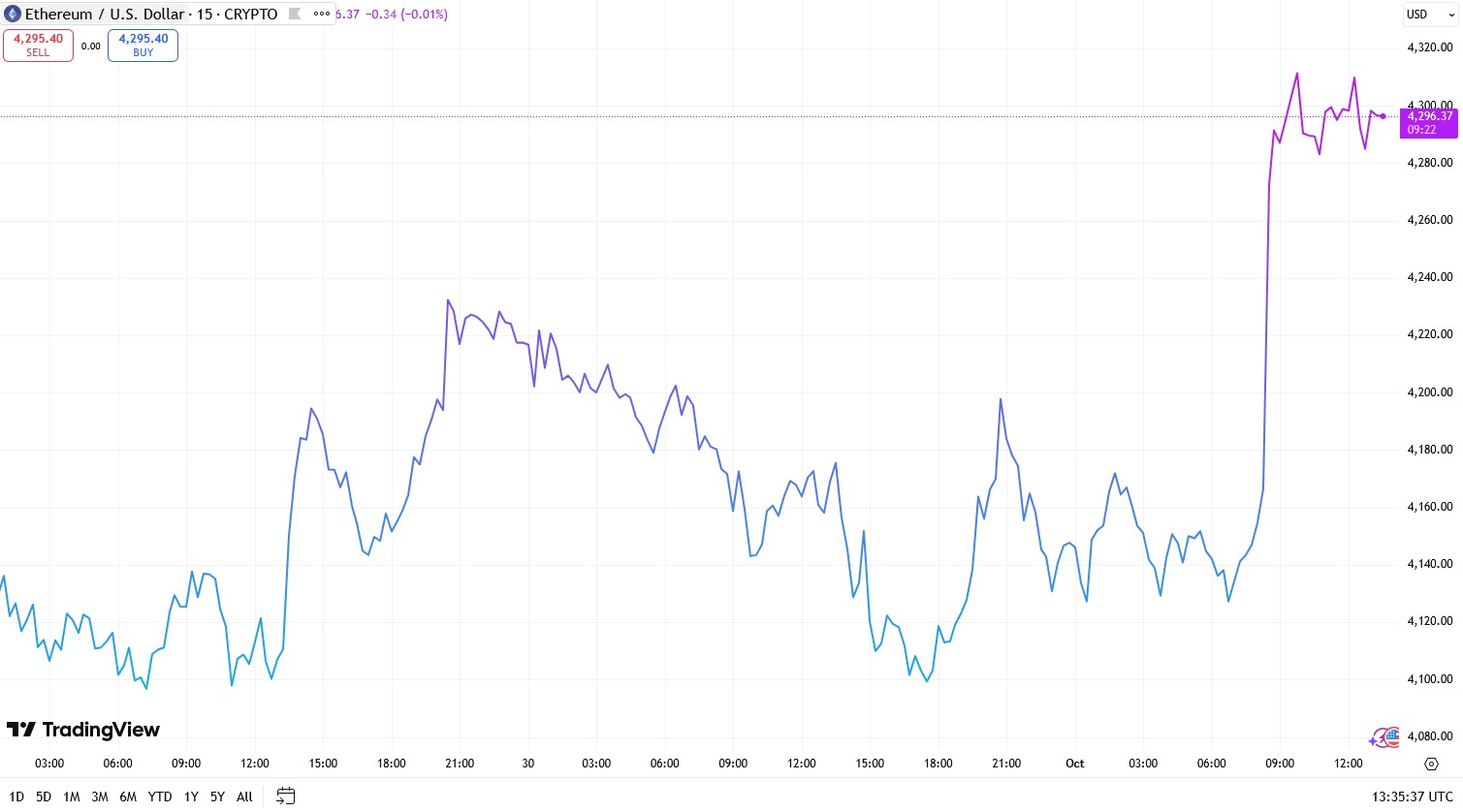 Evaluating what news is moving Ethereum today, it looks like the main topic is the US government shutdown, which put cryptocurrencies on the map. In fact, the overall crypto market mood is positive, largely thanks to Bitcoin bouncing back.