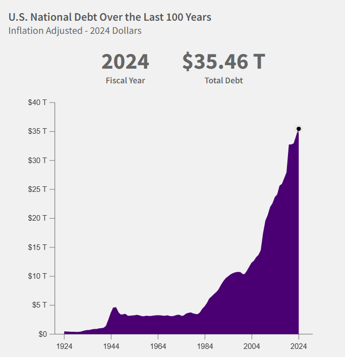 U.S. gross federal debt reached roughly $37.5 trillion in mid-2025, according to Treasury data. CBO projections show federal debt held by the public climbing toward 118% of GDP by 2035, shifting the baseline for safe-asset demand.