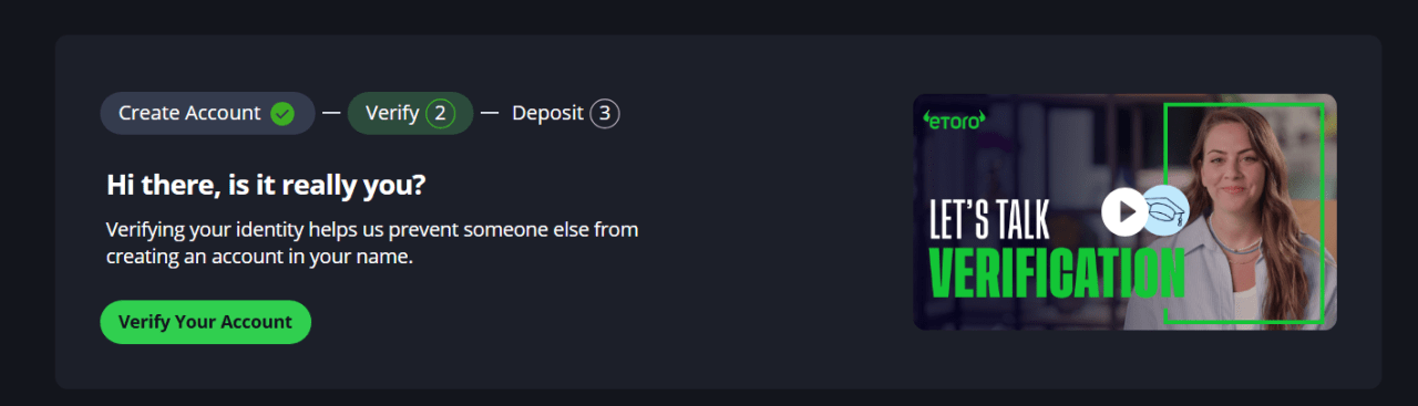 To use regulated platforms like eToro, account verification is mandatory. You must submit a government-issued ID and a valid proof of address to comply with Know Your Customer (KYC) requirements.