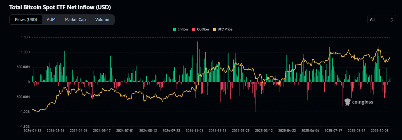 Institutional demand for crypto has also improved. U.S. spot Bitcoin ETFs now hold tens of billions in assets, with some days seeing inflows of over $1 billion.
