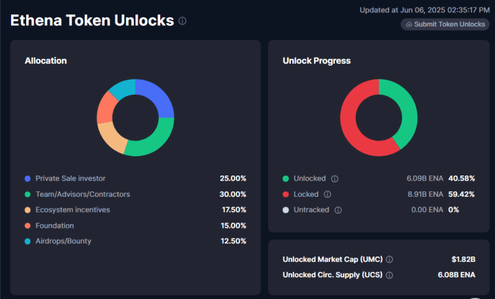 Token unlocks—such as ~$12.7 M on June 2 and another $50 M (≈171 M ENA) on June 5—have weighed on price but haven’t triggered major dumps.