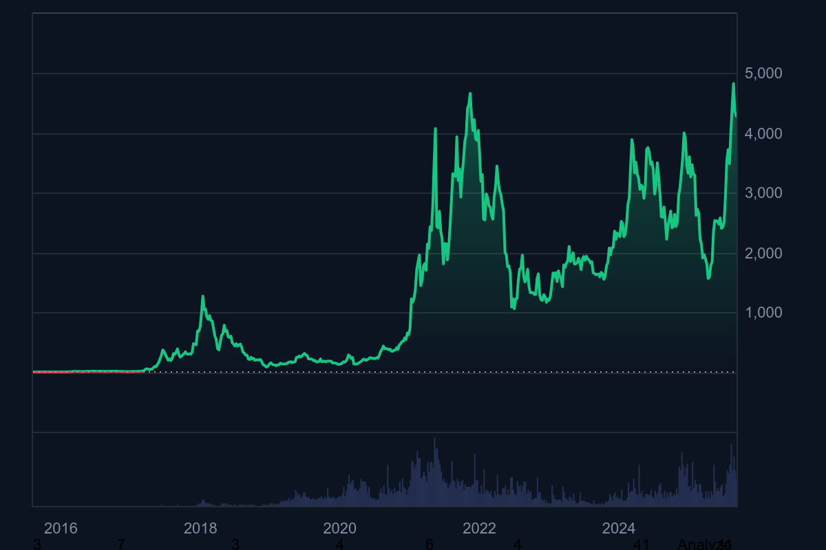 History plays a key part in considering whether ETH is a good investment, Ethereum has risen roughly 90% over the past year, moving from about $2,448 to around $4,298 as of September 5, 2025.