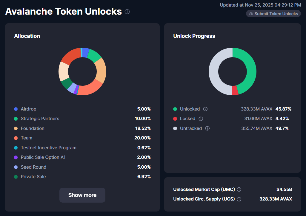 AVAX has a maximum supply of 720,000,000 tokens, and part of the transaction fees are burned, meaning they are permanently removed.