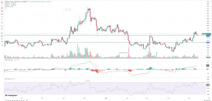 Since slipping out of the season high of $640, BCH price has been caught in a range between $250 and $420. It recently breached the key resistance level of $420, and all the technical indicators, from MACD to RSI, hint at further upside.