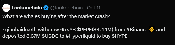 Pepe’s price fell about 4.6% in the last 24 hours, with daily trading volume above $590M. On-chain trackers reported one whale withdrawing 657.8B PEPE worth roughly $4.4M from an exchange, while others transferred over 1.5T tokens just before the latest dip.