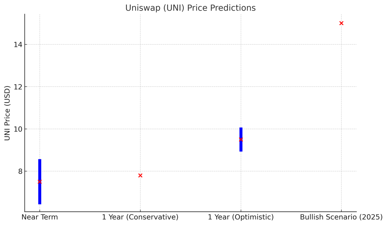 Current analyst forecasts suggest UNI could trade between $6.50 and $8.50 in the near term. Longer-term one-year projections are mixed. Some conservative models, like Gov.Capital, estimate UNI will hover near $7.80, implying a small gain of about 3.5%.