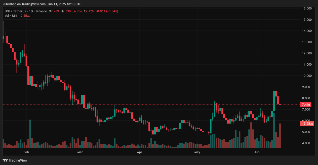 Uniswap (UNI), the governance token powering one of the world’s largest decentralized exchanges, is currently trading around $7.43, with a market capitalization near $4.7 billion. Over the past year, UNI has dropped about 28% but has seen a 20% rebound in the last week alone, signaling renewed interest as crypto markets recover.