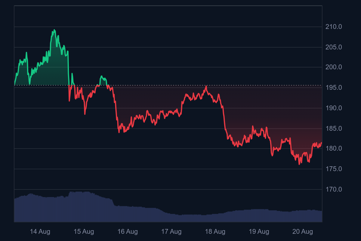 For Solana, the near-term test is a daily close back above $208.46, with the $176 to $182 band acting as first support from the 7-day range.