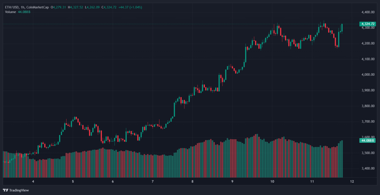 Ethereum broke above its long-standing resistance around $4,000 and now trades comfortably above $4,300, suggesting renewed bullish momentum. Analysts point to structured Elliott Wave setups that reinforce a long-term target around $6,000.
